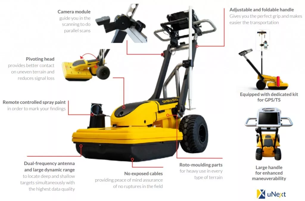 Data Quality – Large bandwidth offering the highest resolution; the largest dynamic range for the best penetration depth; and dual-head sensor integrating ultra-wide band antennas (250MHz and 700MHz).